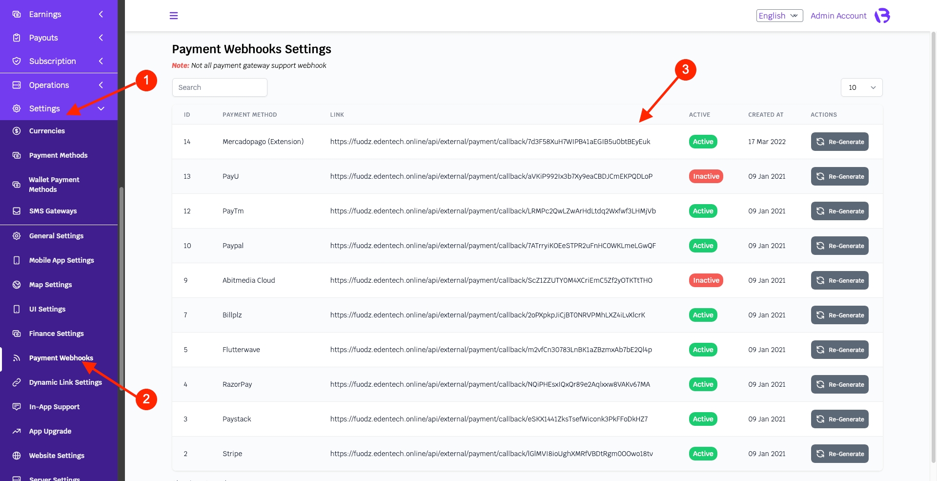 You will need to copy the payment gateway webhook link from the backend and add to your payment gateway webhook settings page.