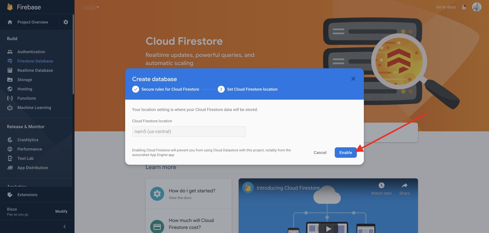 For chat/live tracking/automatic order assignment feature to work, you need to create a Firestore database on the firebase console.