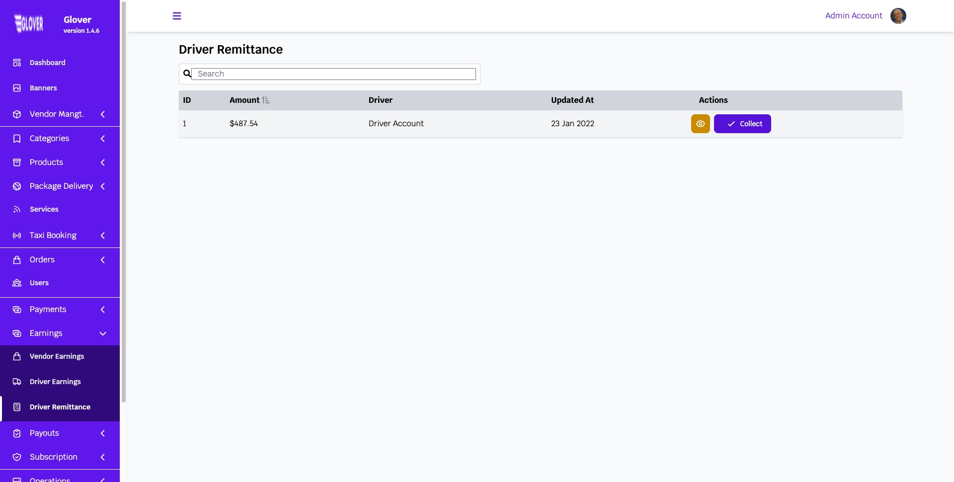 So what happens if you don't want to use driver wallet or earning? Well there is driver remittance page. With the page you can see the amount with which of the drivers in the system.