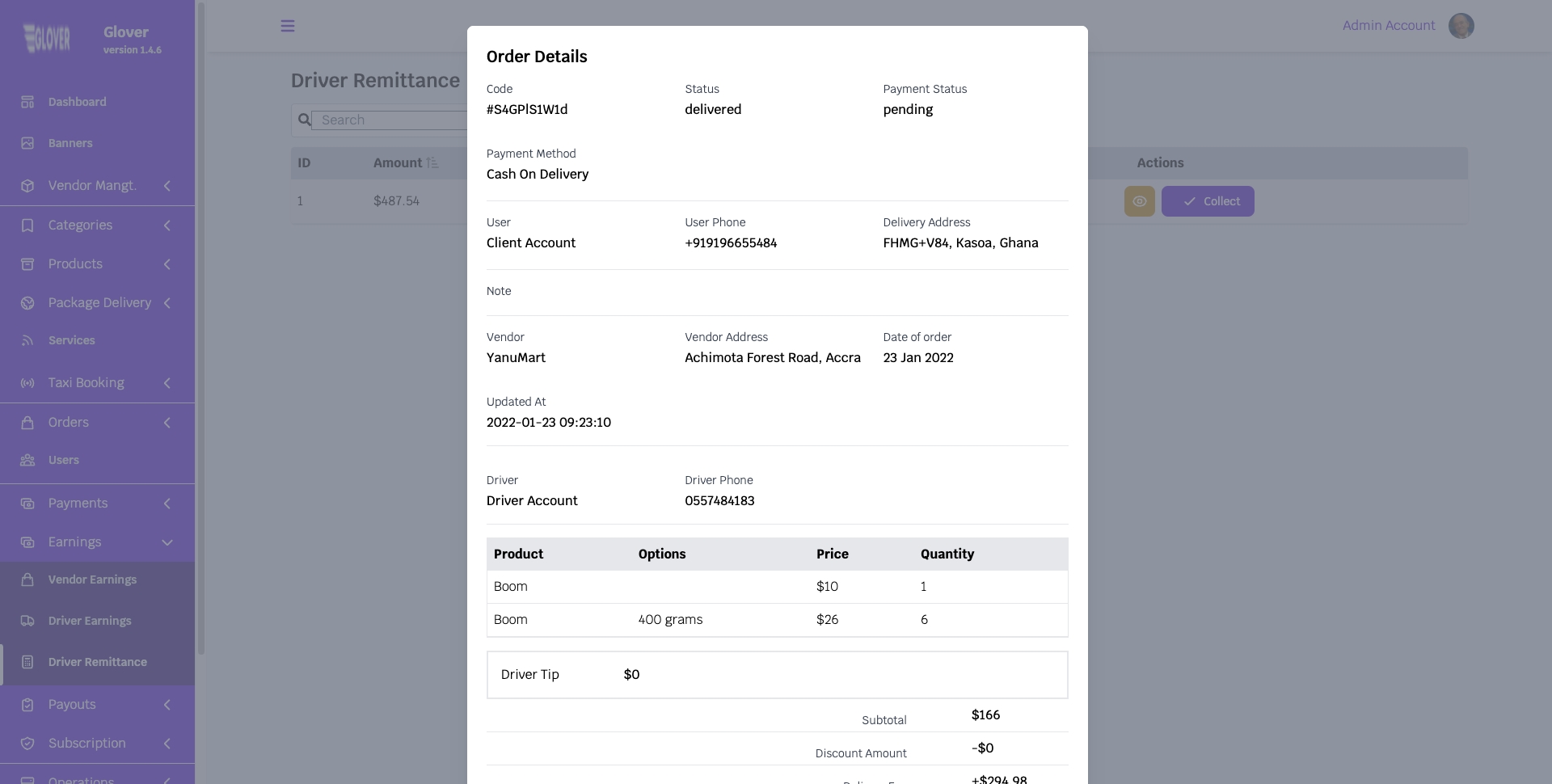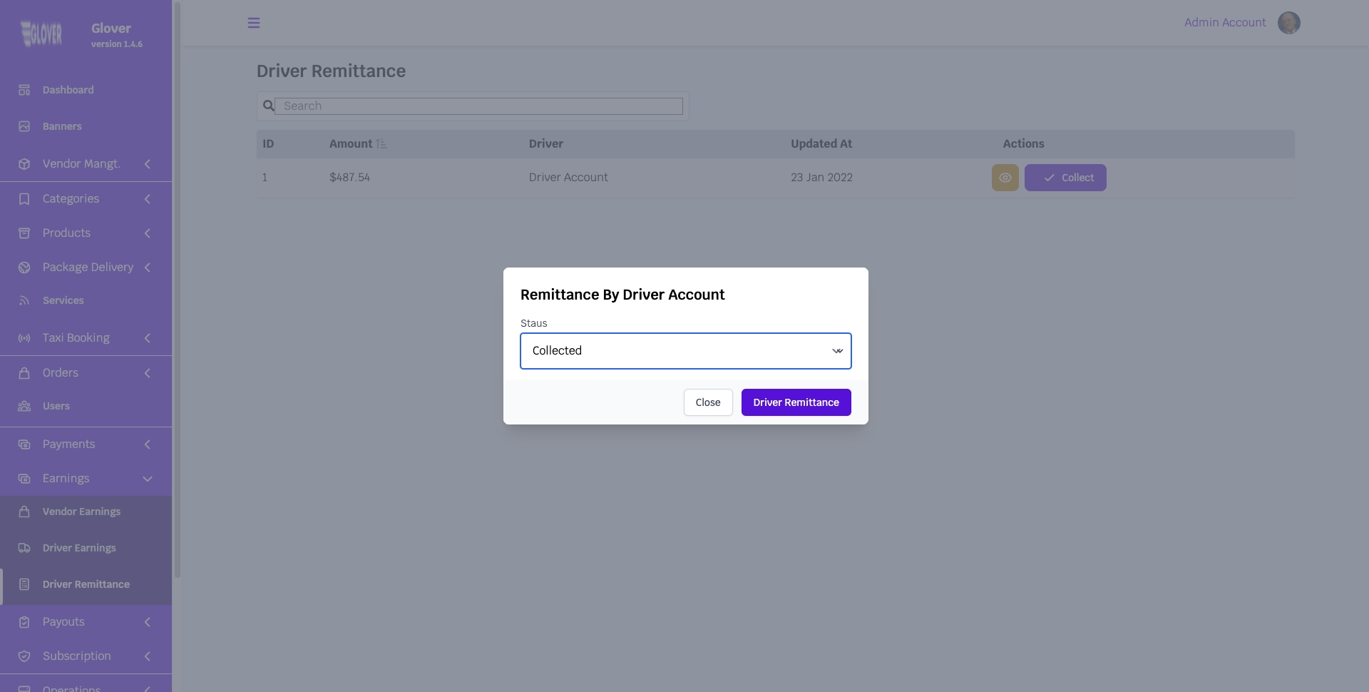 You can then change the remittance status to collected/cancelled depending on if you collected the money from driver or not.