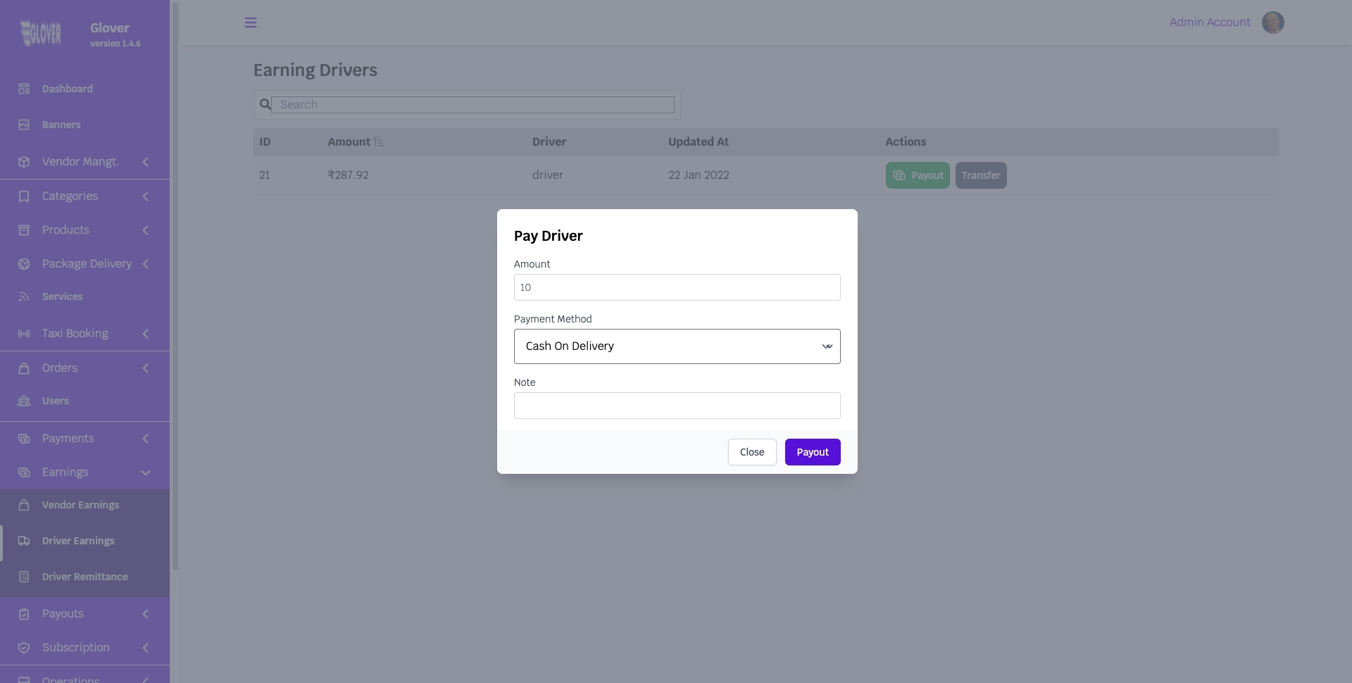 Note: With recent version of the driver app, driver themselves can request for a payout and the request can only be approved by the admin.